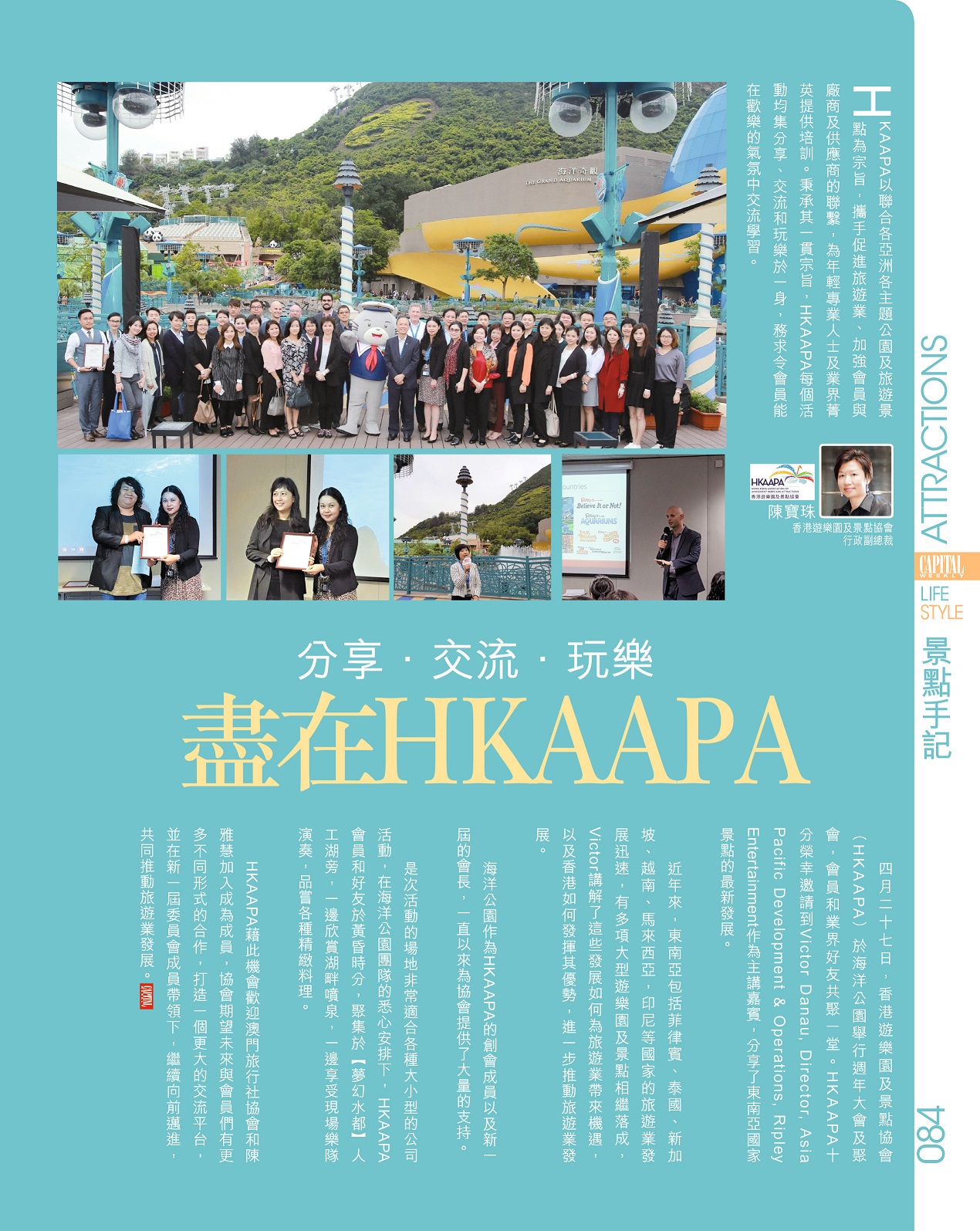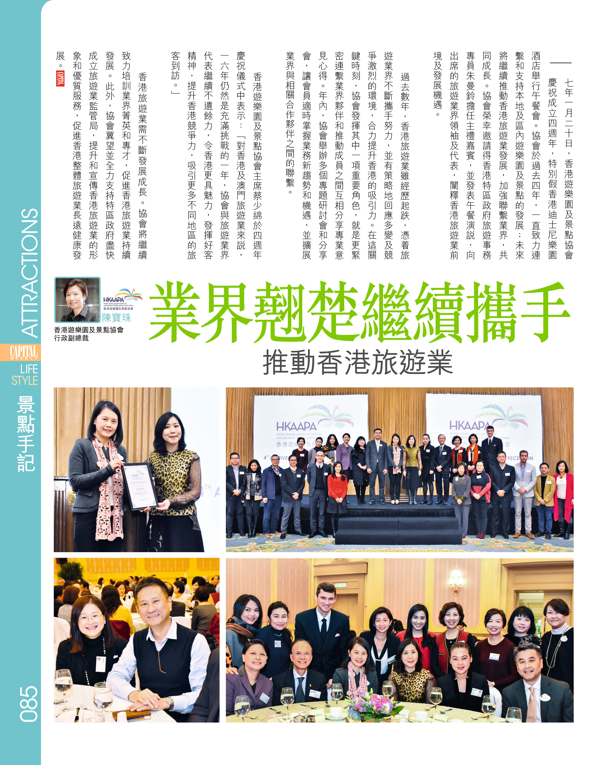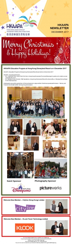 香港遊樂園及景點協會於 2012 年成立,以連繫亞洲各主題公園及旅遊景點為宗旨,攜手促進 旅遊業,加強會員與廠商及供應商的聯繫,為年輕專業人士及業界菁英提供培訓,共同推動