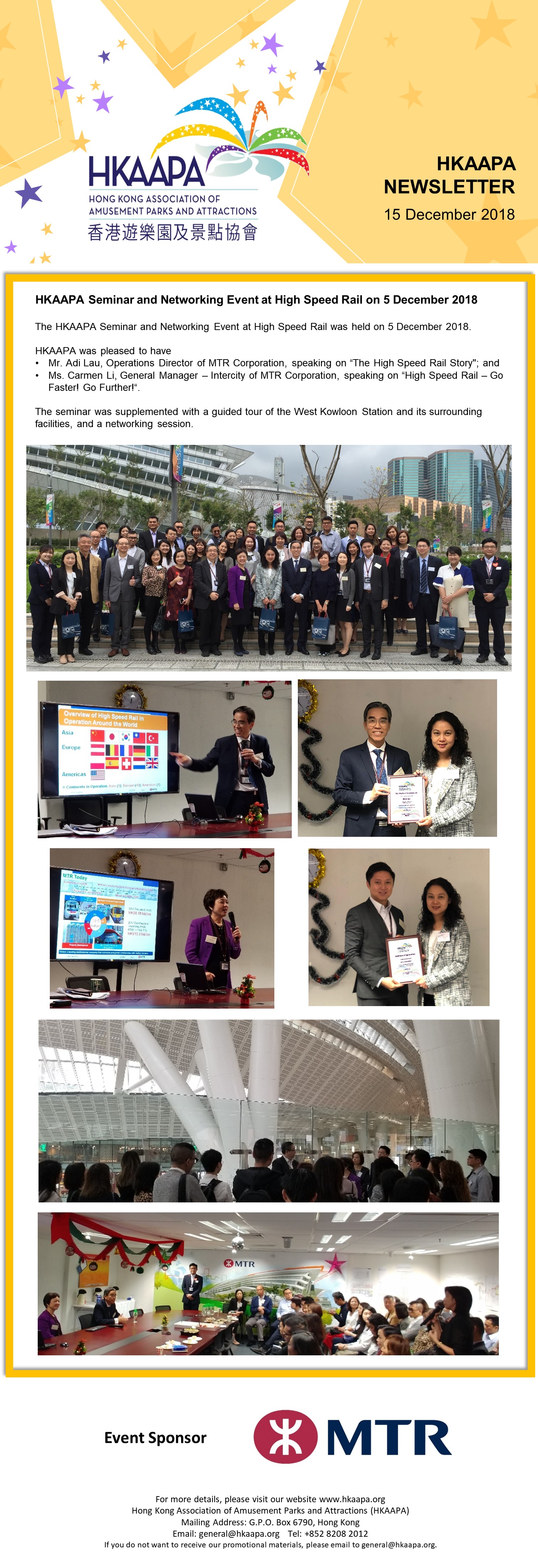 Keeping members connected with the latest industry news and market trend, HKAAPA has organised varieties of event. In 2017, HKAAPA brought members with forums and education platforms including Executive Forum cum Networking Dinner in Hong Kong Jockey Club and Education Program in Hong Kong Disneyland Resort. In October, the CEO forum and Back of House Tour in Ngong Ping 360 surprised the members by sneaking into the behind-the-scene.